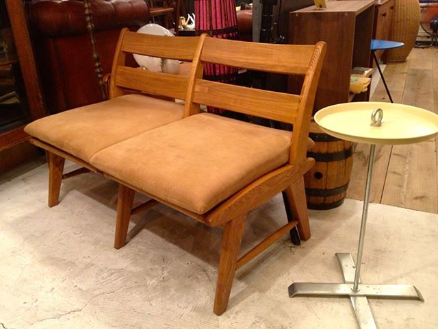 オークウッドフレームのソファも入荷しています。 サイズも小振りで、フレームもしっかりしています。 ただ、座面のファブリックがうっすら汚れがあります。 替えカバーを新たに作ってカスタムしても◎ デニム生地とかどうですかー? W:1100 D:720 H:760 Sh:420 ¥23,100
